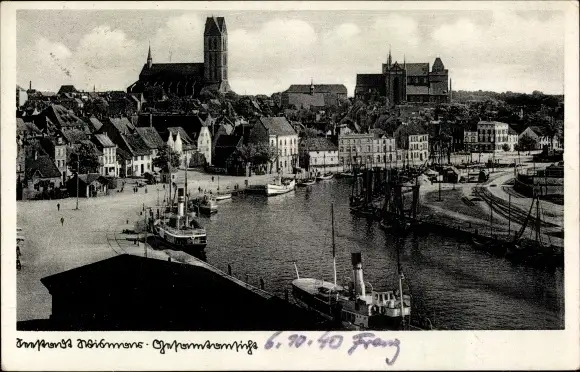 Ansichtskarte, Postkarte, Hafen, Schiffe, Boote, Dampfer, Boot