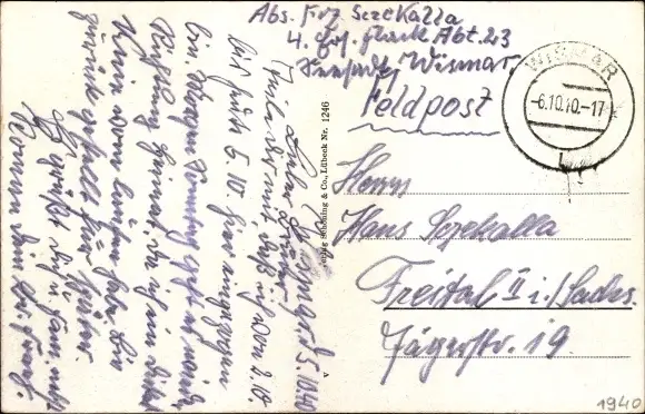 Zustand, siehe Scan, gelaufen, 1940 - ca 14 cm X 9 cm