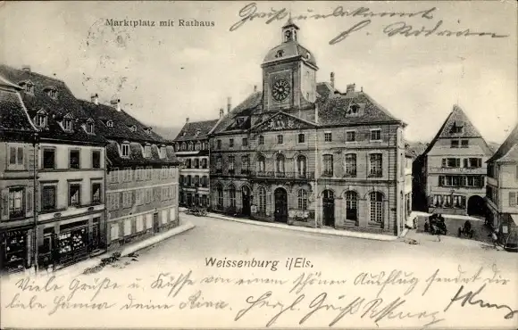 Ak Wissembourg Weißenburg Elsass Bas Rhin, Marktplatz, Rathaus