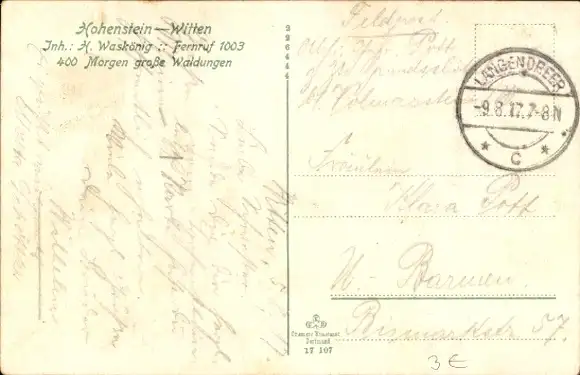 Zustand, siehe Scan, gelaufen, 1917- Inhaber H. Waskönig - ca 14 cm X 9 cm