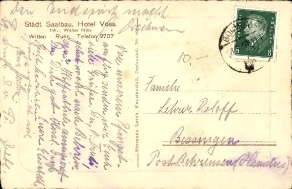 Zustand, siehe Scan, gelaufen, 1930- Inh. Walter Hiby - ca 14 cm X 9 cm