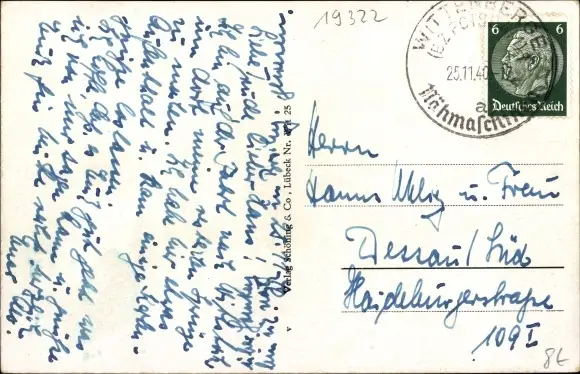 Zustand, siehe Scan, gelaufen, 1940 - ca 14 cm X 9 cm