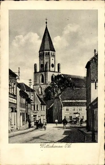 Ak Wittichenau in der Oberlausitz, Straßenpartie, Kirche
