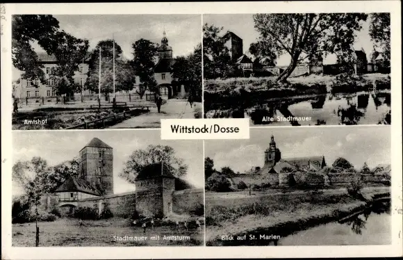 Ak Wittstock Dosse in der Ostprignitz, Amtshof, Alte Stadtmauer, Amtsturm, St Marien