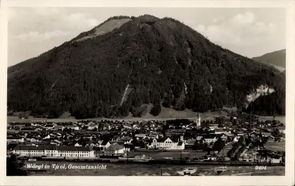 Ak Wörgl Tirol, Gesamtansicht der Stadt, Kirche und Berg