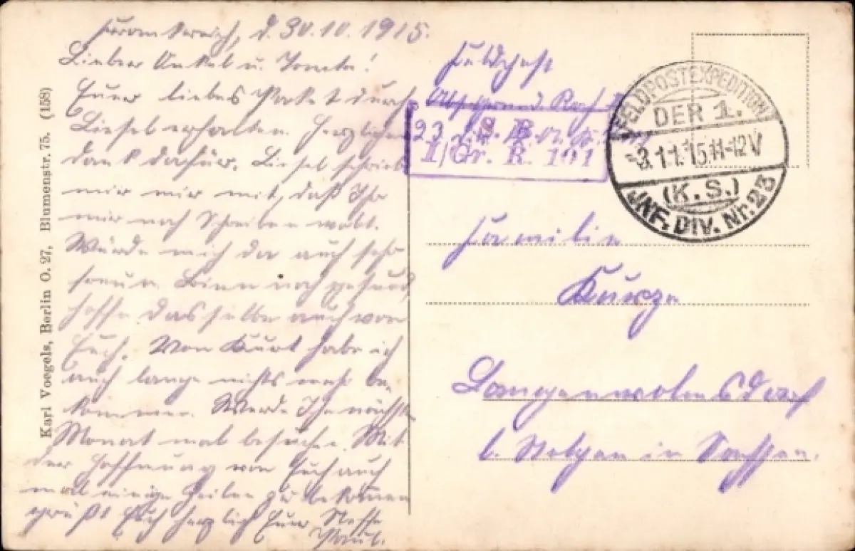 Zustand siehe Scan, gelaufen, 1915 - ca 14 cm X 9 cm