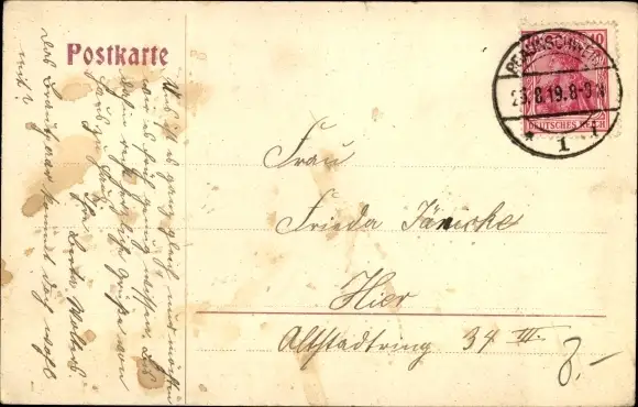 Zustand, siehe Scan, gelaufen, 1919 - ca 14 cm X 9 cm