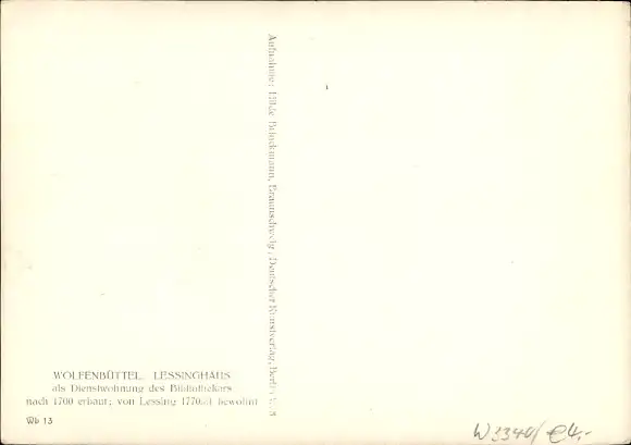Ak Wolfenbüttel in Niedersachsen, Lessinghaus, als Dienstwohnung des Bibliothekars