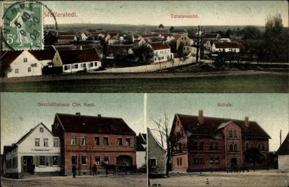 Ak Wolferstedt Allstedt in Sachsen Anhalt, Geschäftshaus, Schule, Totalansicht