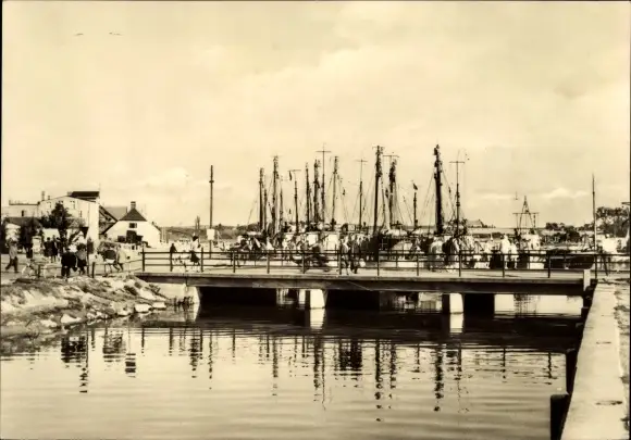 Ak Wolgast in Mecklenburg Vorpommern, Am Hafen, Kutter, Brücke