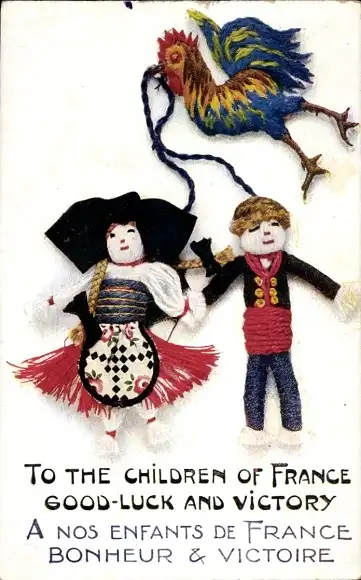 Ak Wollpuppen in elsässer Trachten, Hahn