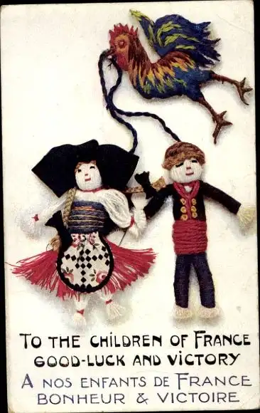 Ak Wollpuppen in elsässer Trachten, Hahn