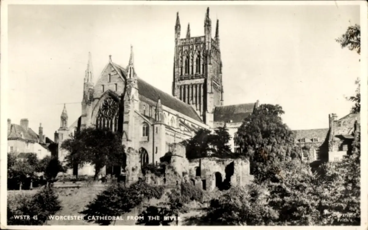 Ak Worcester West Midlands England, Worcester Kathedrale, Flussansicht, von Frith's