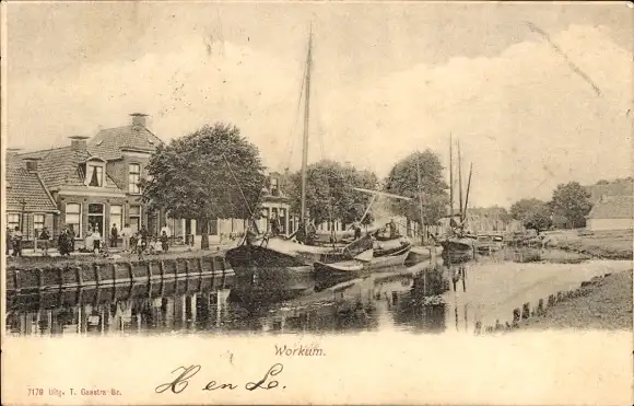 Ak Workum Fryslân Niederlande, Fluss, Boote, Häuser