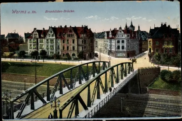 Ak Worms, Brunhilden-Brücke, Bahnstrecke