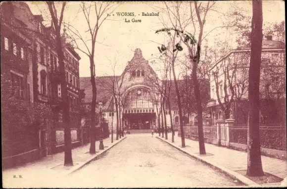 Ak Worms am Rhein, Bahnhof