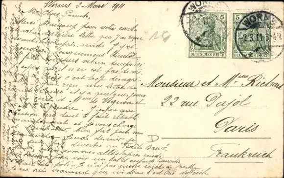 Zustand, siehe Scan, gelaufen, 1911 - ca 14 cm X 9 cm