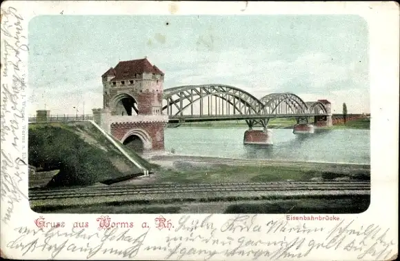 Ak Worms am Rhein, Eisenbahnbrücke