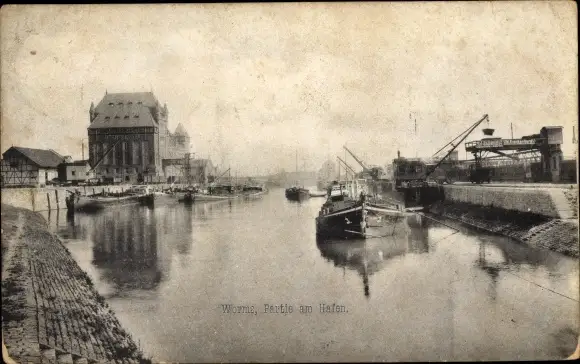 Ak Worms am Rhein, Hafenpartie