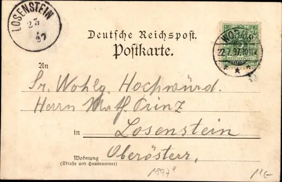 Zustand, siehe Scan, gelaufen, 1897 - ca 14 cm X 9 cm
