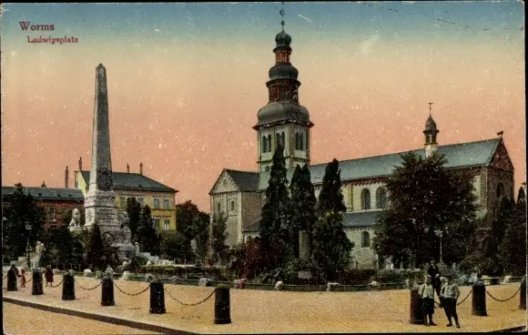 Ak Worms am Rhein, Ludwigplatz, Kirche