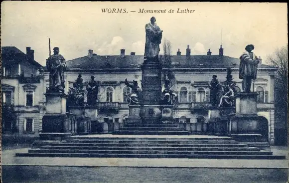 Ak Worms am Rhein, Monument de Luther, große Statue, umgeben von Figuren