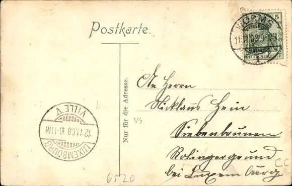 Zustand, siehe Scan, gelaufen, 1908 - ca 5 cm X 3 cm