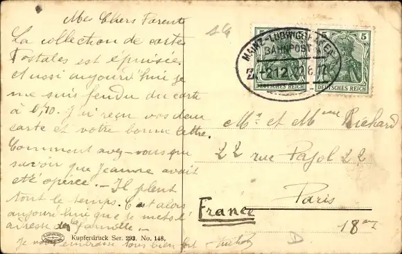 Zustand, siehe Scan, gelaufen, 1912 - ca 14 cm X 9 cm