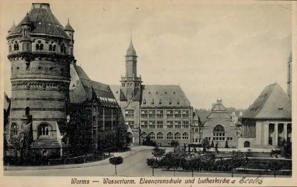 Ak Worms am Rhein, Wasserturm, Eleonorenschule, Lutherkirche