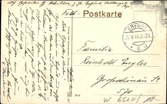 Zustand, siehe Scan, gelaufen, 1915 - ca 14 cm X 9 cm