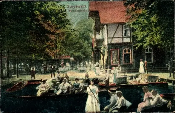 Ak Wotschofska Lübbenau, Schultheiss, Boote, Mockwitz