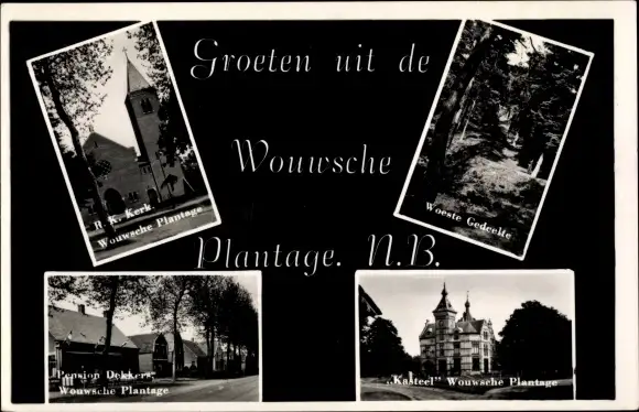 Ak Wouw Nordbrabant, Wouwsche Plantage, R. K. Kerk, Pension, Kasteel, Woeste