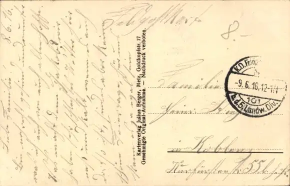 Zustand, siehe Scan, gelaufen, 1916 - ca 14 cm X 9 cm