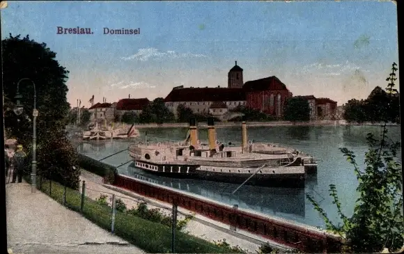 Ak Wrocław Breslau Schlesien, Dominsel, Dampfer