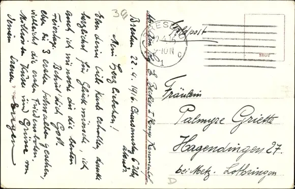 Zustand, siehe Scan, gelaufen, 1916 - ca 14 cm X 9 cm