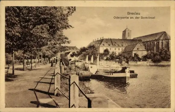 Ak Wrocław Breslau Schlesien, Oderpartie an der Dominsel, Sandkirche