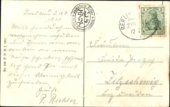 Zustand, siehe Scan, gelaufen, 1911 - ca 14 cm X 9 cm