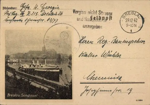 Ak Wrocław Breslau Schlesien, Sandinsel, Dampfschiff auf der Oder