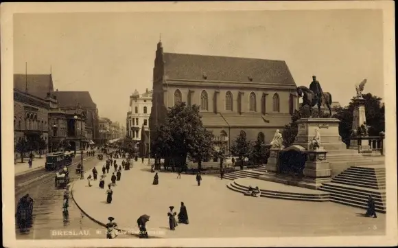 Ak Wrocław Breslau Schlesien, Straßenpartie am Denkmal