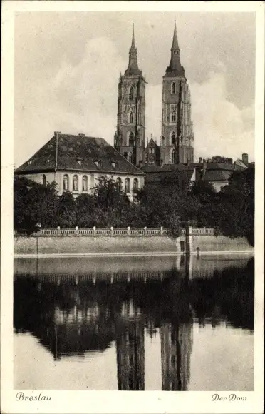 Ak Wrocław Breslau in Schlesien, Der Dom, Partie am Ufer