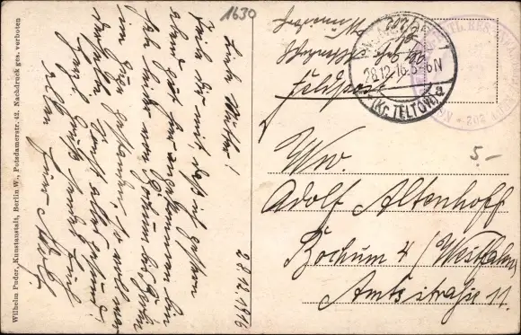 Zustand, siehe Scan, gelaufen, 1916 - ca 14 cm X 9 cm