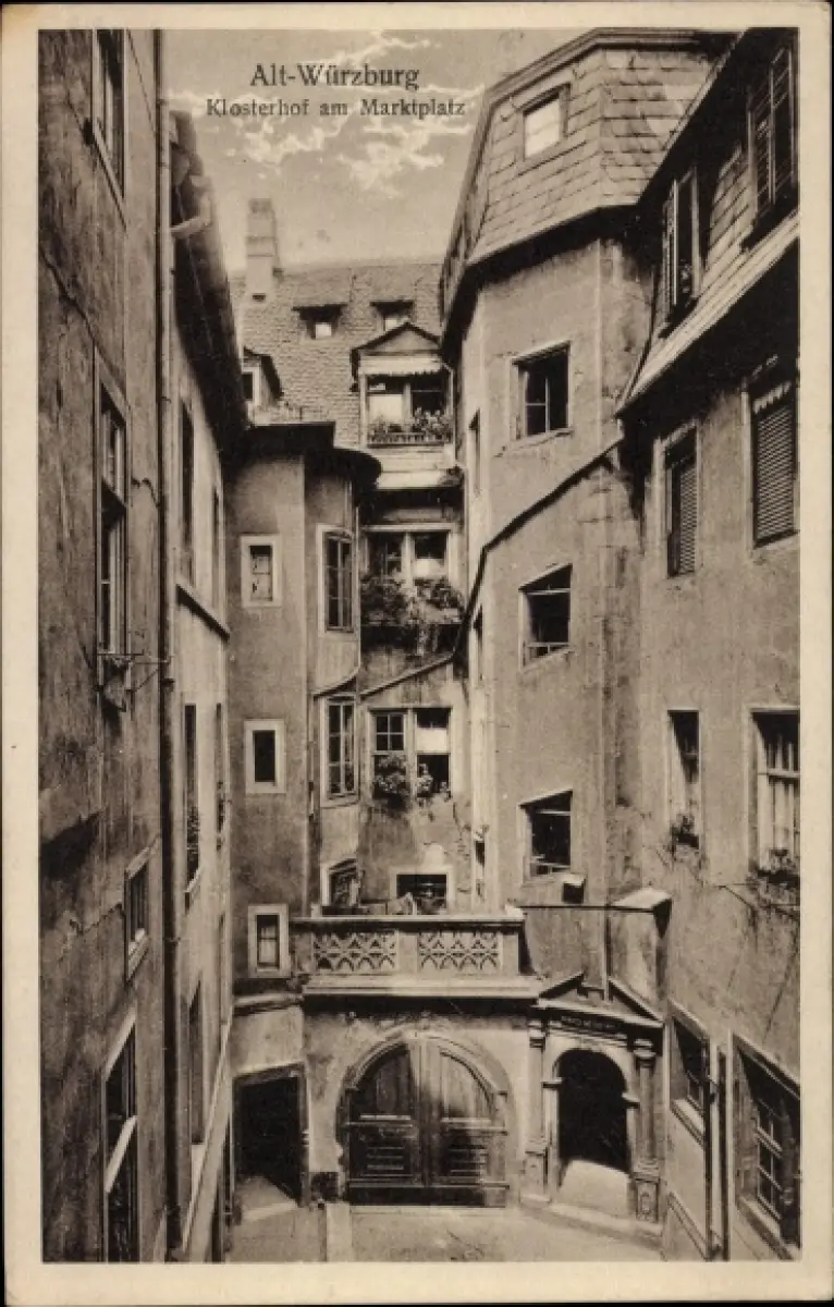 Ak Würzburg am Main Unterfranken, Alt-Würzburg, Klosterhof am Marktplatz