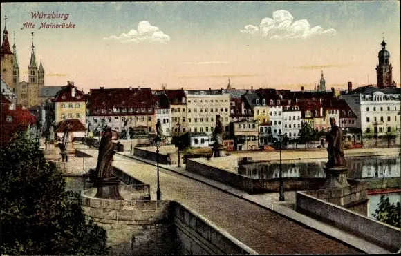 Ak Würzburg am Main Unterfranken, Alte Mainbrücke