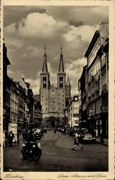 Ak Würzburg am Main Unterfranken, Domstraße, Dom