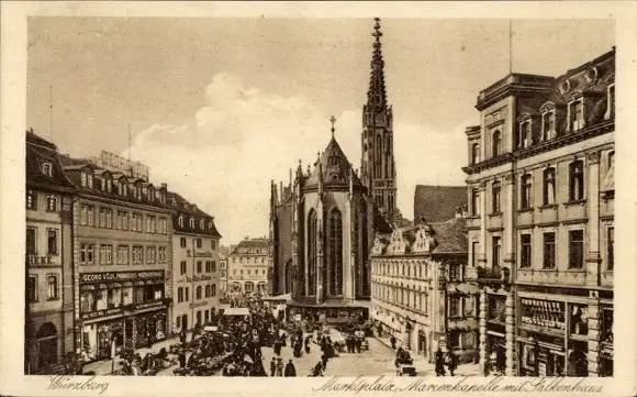 Ak Würzburg am Main Unterfranken, Marktplatz, Marienkapelle mit Falkenhaus