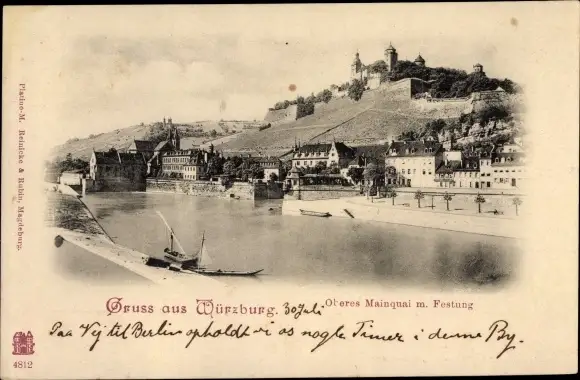 Ak Würzburg am Main Unterfranken, Oberes Mainquai mit Festung