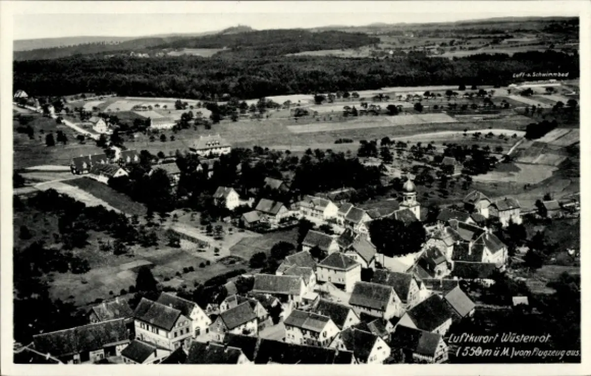 Ak Wüstenrot in Württemberg, Luftaufnahme von ländliche Umgebung, Häuseransicht, Flugzeugperspek