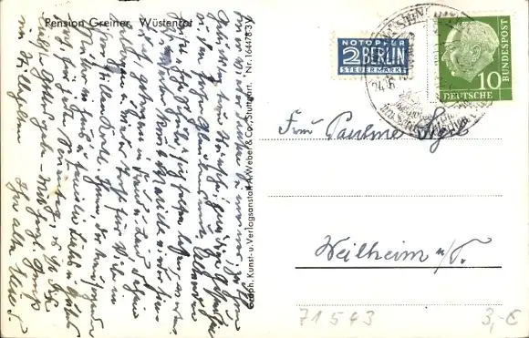 Ak Wüstenrot in Württemberg, Pension Greiner