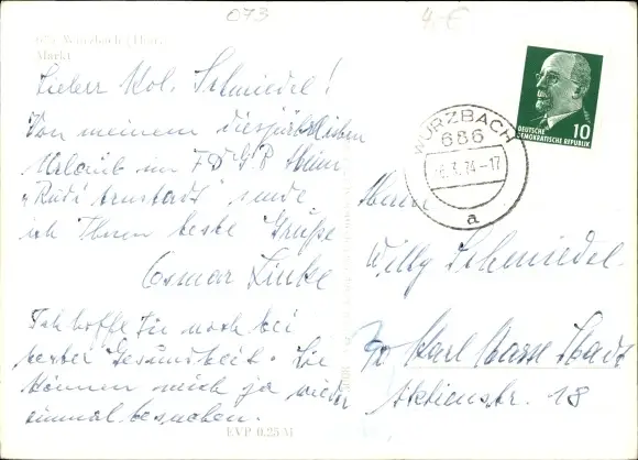 Zustand, siehe Scan, gelaufen, 1974 - ca 15 cm X 11 cm