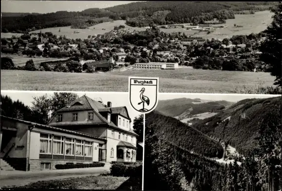 Ak Wurzbach in Thüringen, Wappen, Panorama, Teilansicht